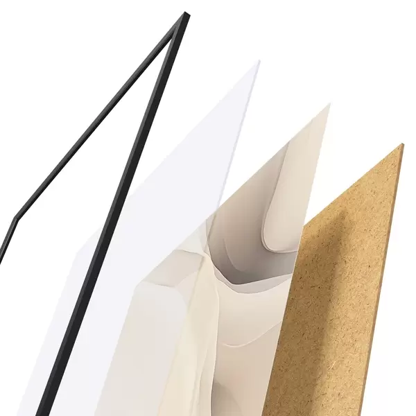Das Poster besteht aus einem Rahmen, Plexiglas, einem gedruckten Bild und einer Rückwand aus Spanplatten. Dank der Halterungen auf der Rückseite kann das Poster sofort an die Wand gehängt werden.
