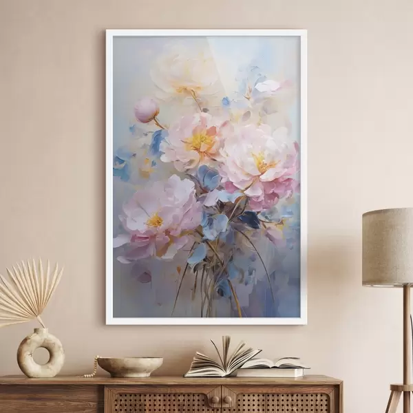 Poster Abstrakte Blumen: rosa und blaue Farbtöne f45652