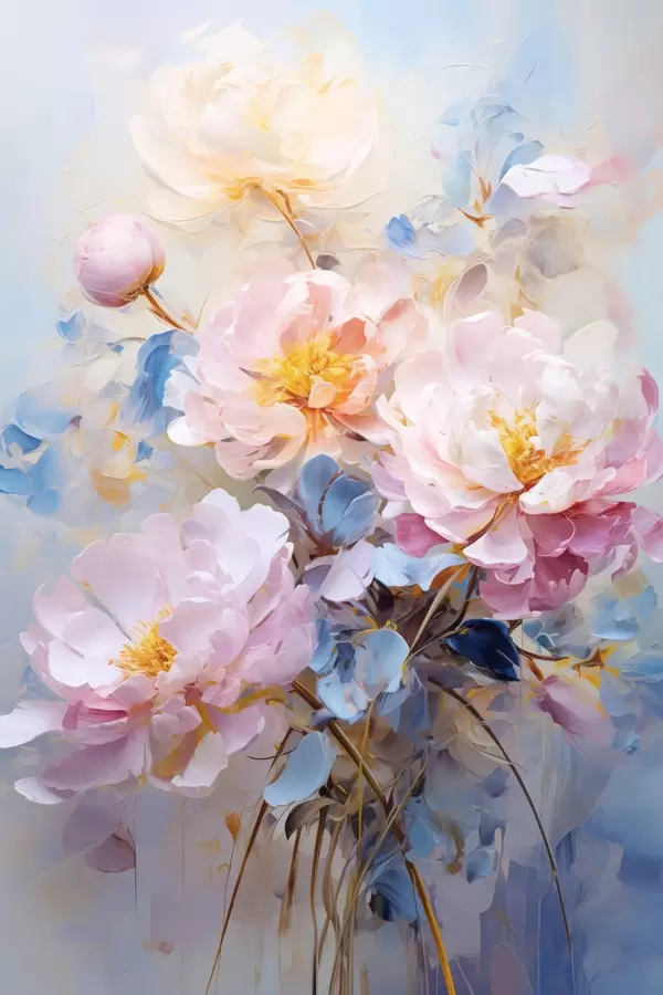 Poster Abstrakte Blumen: rosa und blaue Farbtöne f45652