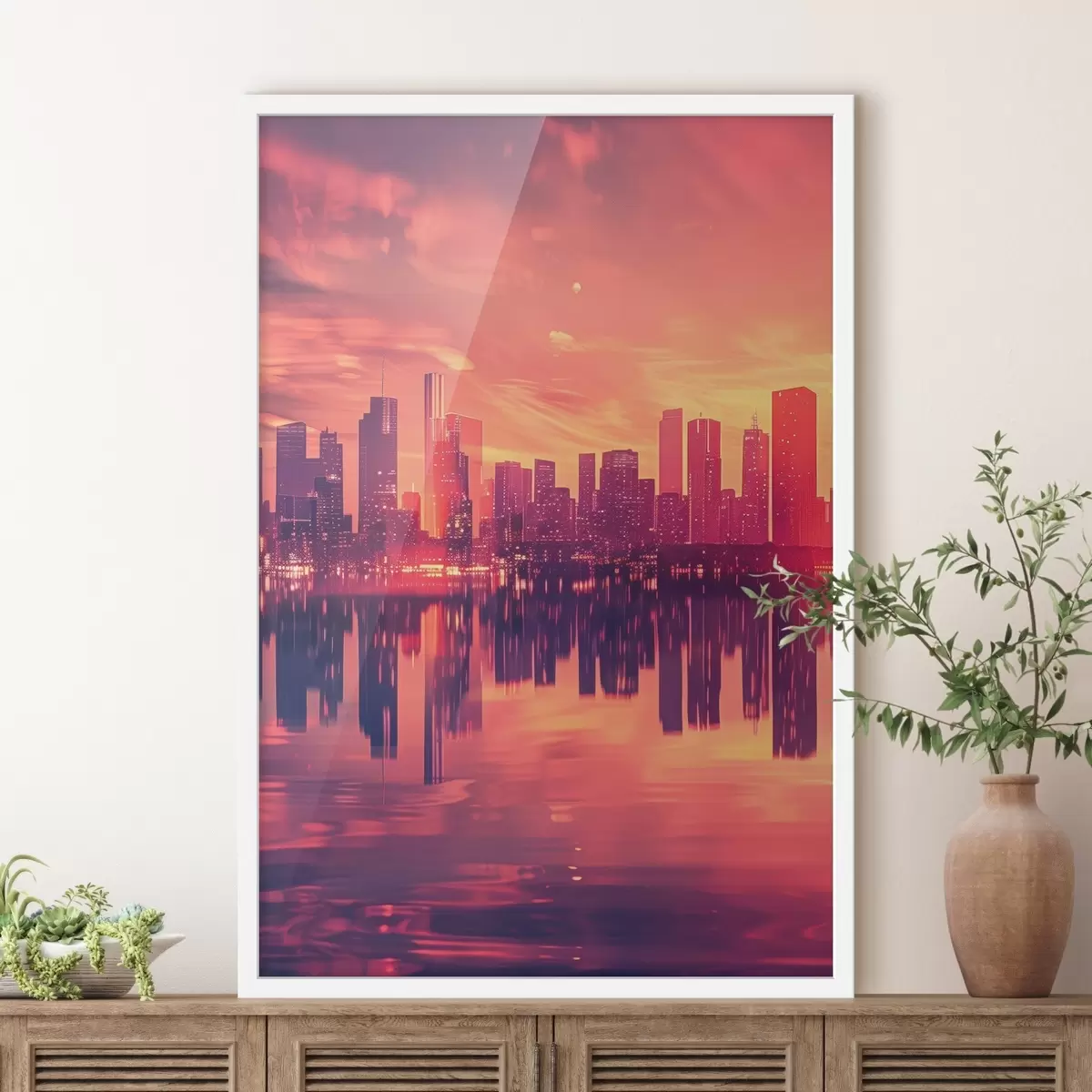 Poster Stadt bei Sonnenuntergang Nr f45658