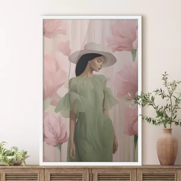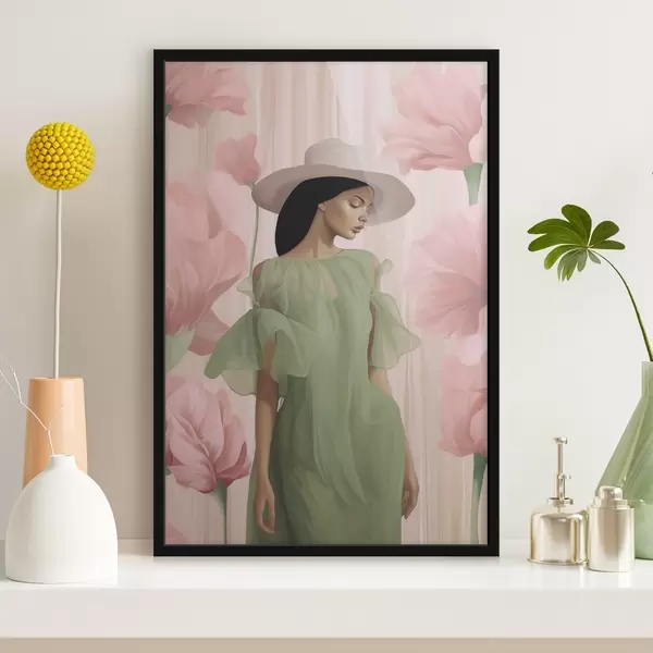 Poster Mädchen mit Hut zwischen Blumen f45678