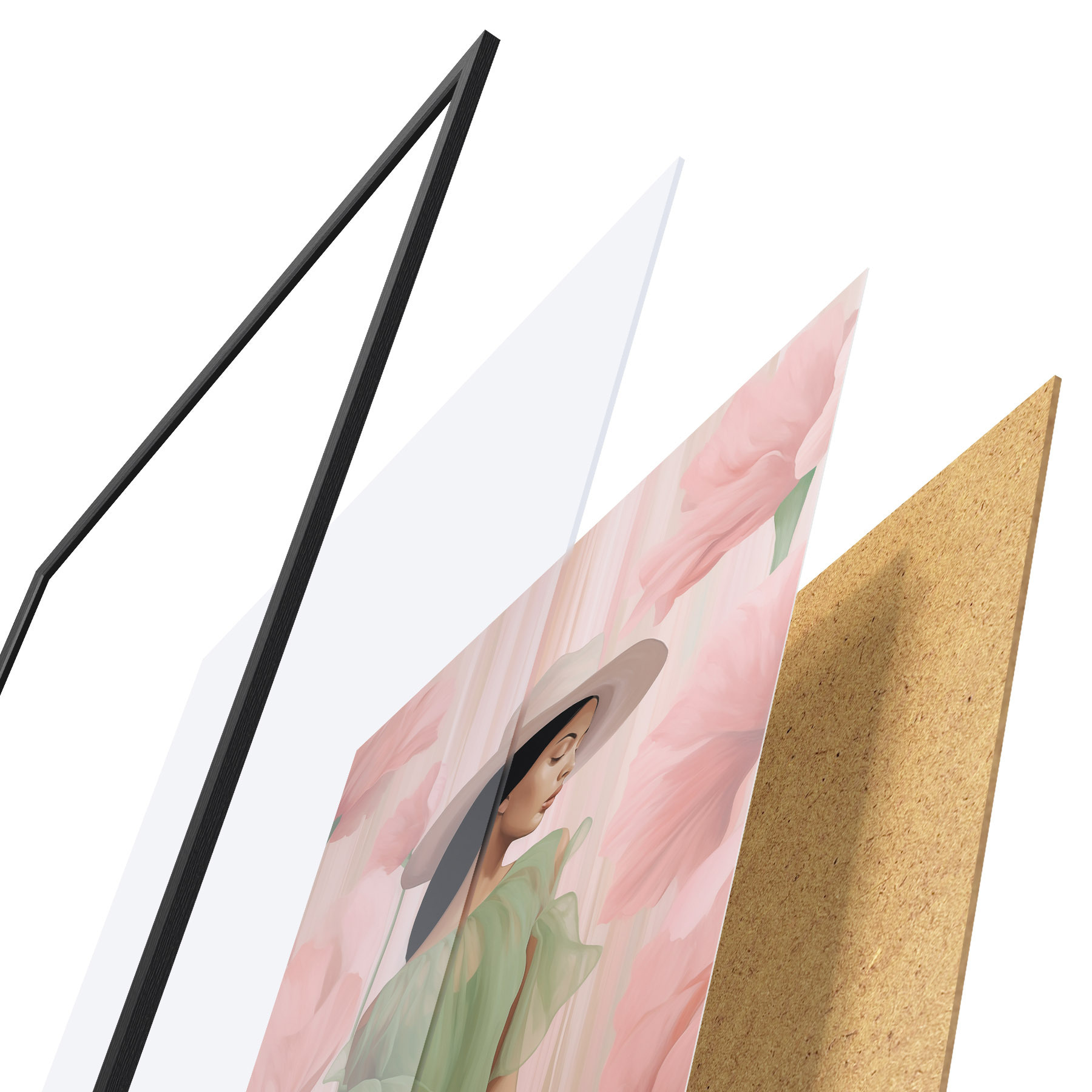 Das Poster besteht aus einem Rahmen, Plexiglas, einem gedruckten Bild und einer Rückwand aus Spanplatten. Dank der Halterungen auf der Rückseite kann das Poster sofort an die Wand gehängt werden.