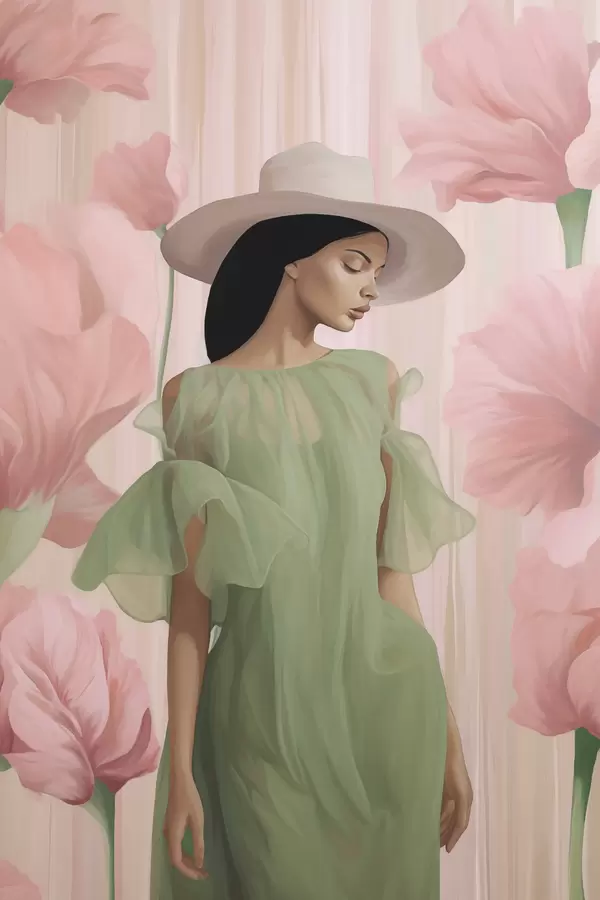Poster Mädchen mit Hut zwischen Blumen f45678