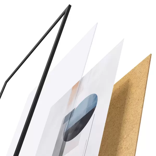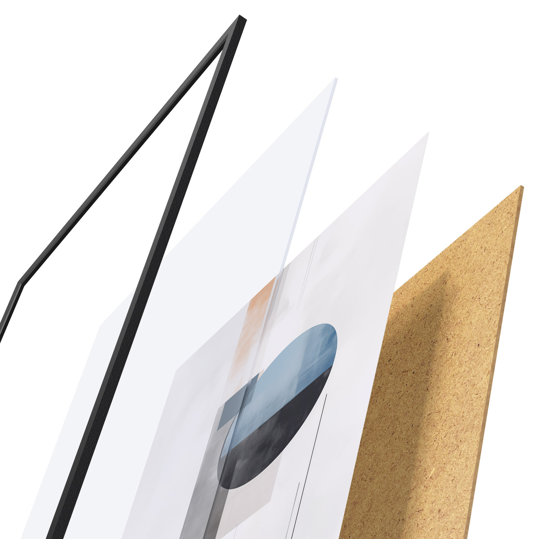 Das Poster besteht aus einem Rahmen, Plexiglas, einem gedruckten Bild und einer Rückwand aus Spanplatten. Dank der Halterungen auf der Rückseite kann das Poster sofort an die Wand gehängt werden.