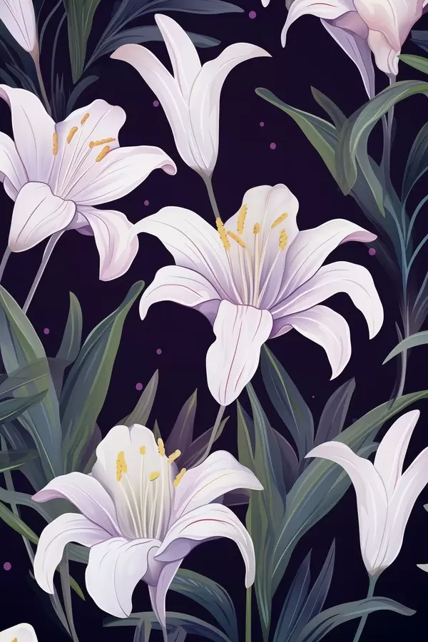 Poster Zarte Lilien auf dunklem Hintergrund mit grünen Blättern Nr f45697