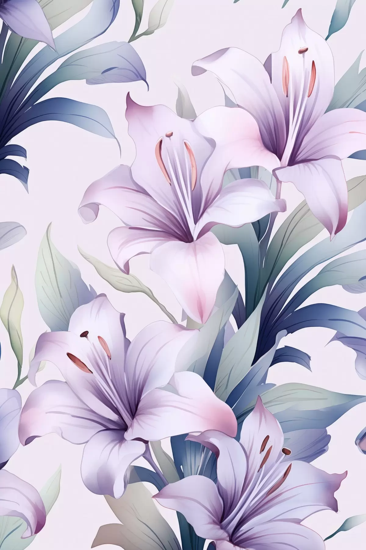 Poster Große rosa-violette Lilien mit grünen Blättern Nr f45698