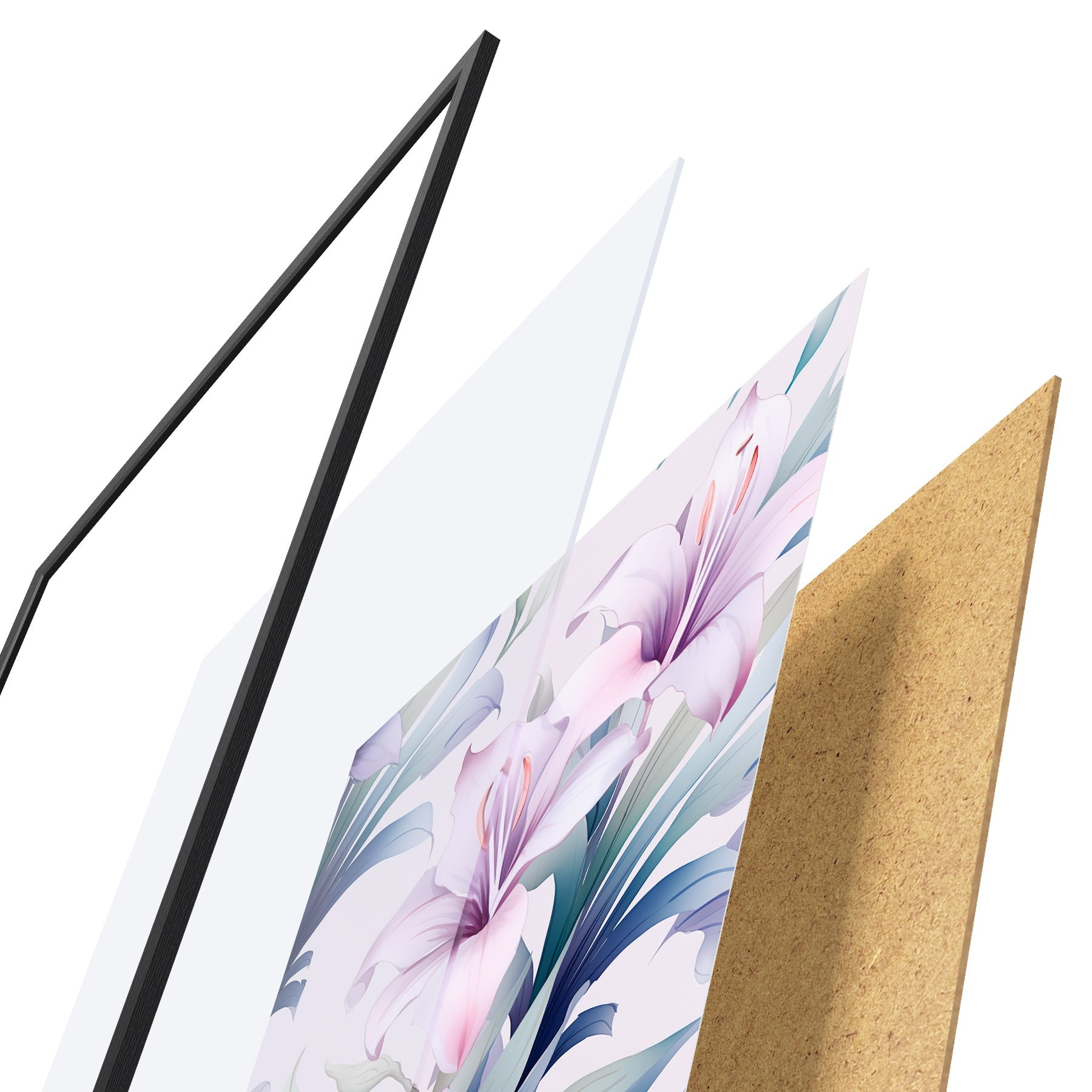 Das Poster besteht aus einem Rahmen, Plexiglas, einem gedruckten Bild und einer Rückwand aus Spanplatten. Dank der Halterungen auf der Rückseite kann das Poster sofort an die Wand gehängt werden.