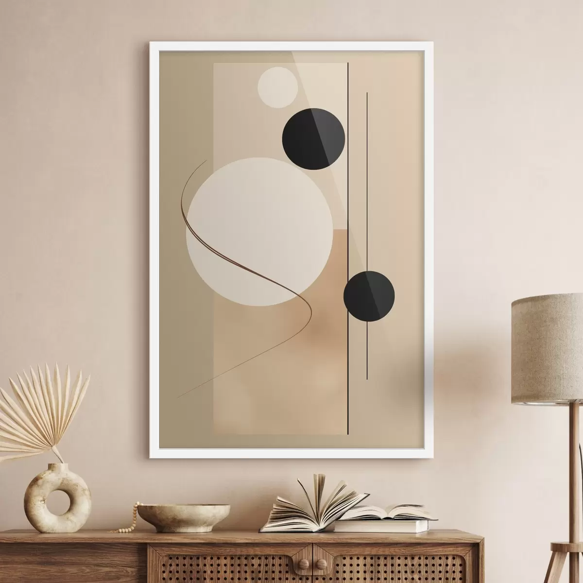 Poster Minimalistische abstrakte Kreise auf einem beigen Hintergrund Nr f45699