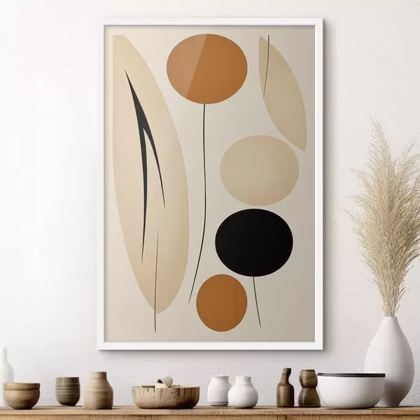 Poster Abstrakte Komposition mit schwarzen und orangefarbenen Kreisen Nr f45700