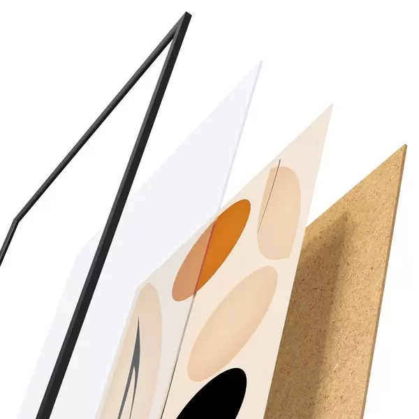 Das Poster besteht aus einem Rahmen, Plexiglas, einem gedruckten Bild und einer Rückwand aus Spanplatten. Dank der Halterungen auf der Rückseite kann das Poster sofort an die Wand gehängt werden.