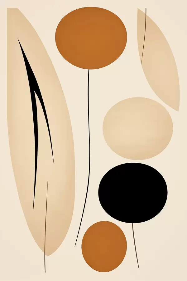 Poster Abstrakte Komposition mit schwarzen und orangefarbenen Kreisen Nr f45700