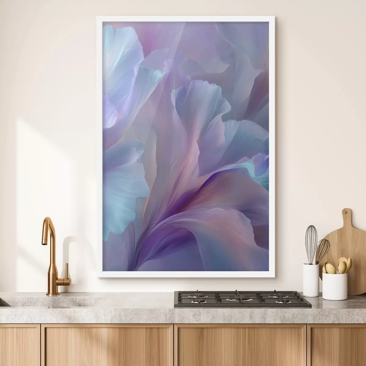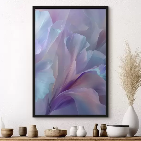 Poster eine zarte Fantasieblume mit Blütenblättern in Violett-, Blau- und Rosatönen. f45711