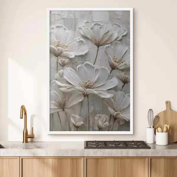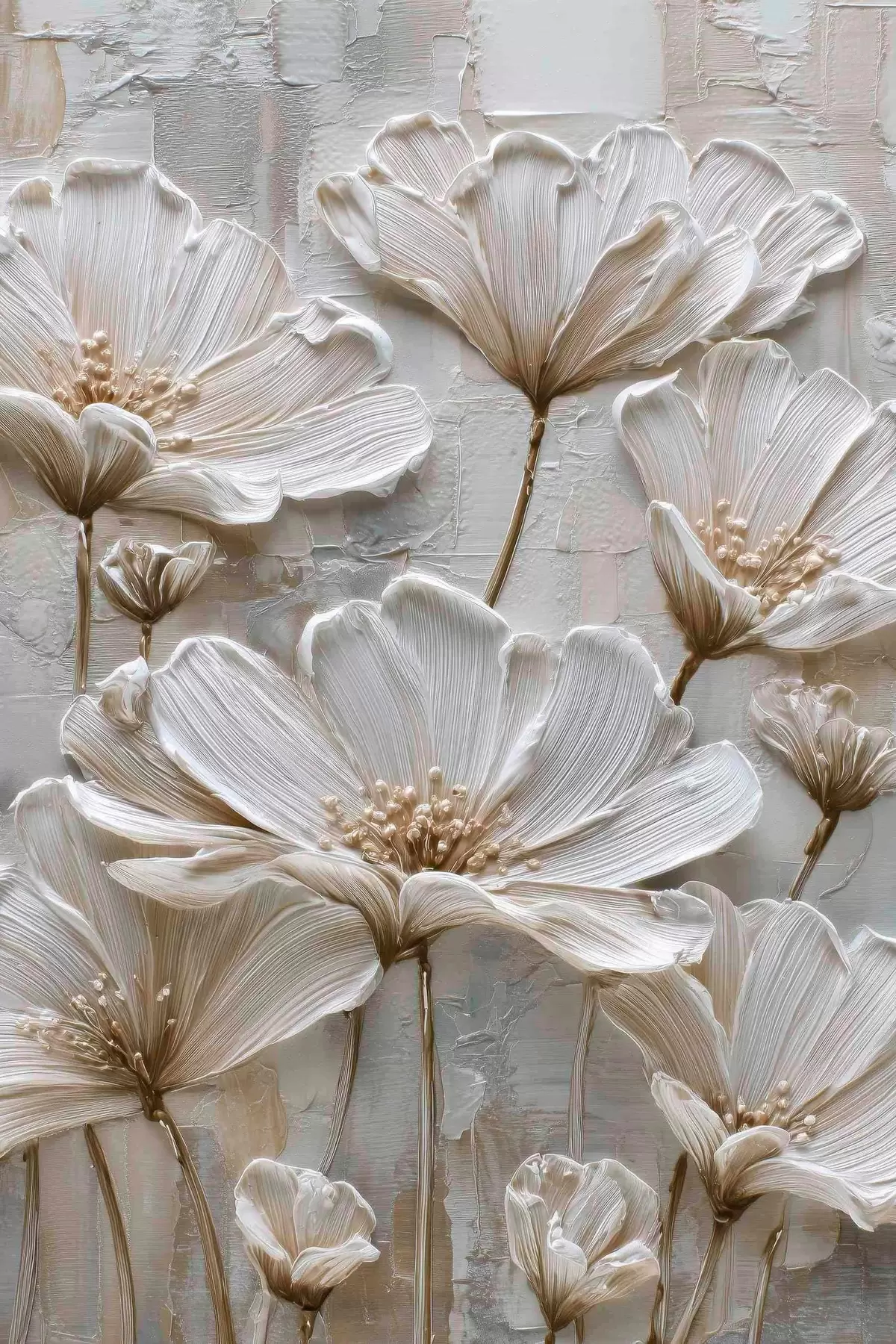 Poster cremefarbene Blumen im Imitations-Impasto-Stil f45713