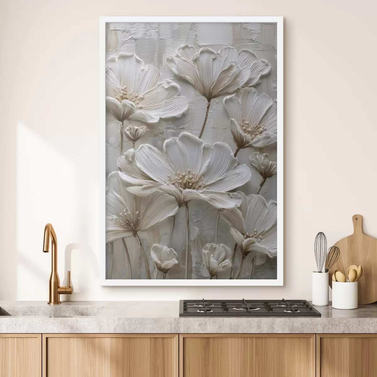 Poster cremefarbene Blumen im Imitations-Impasto-Stil Nr f45713
