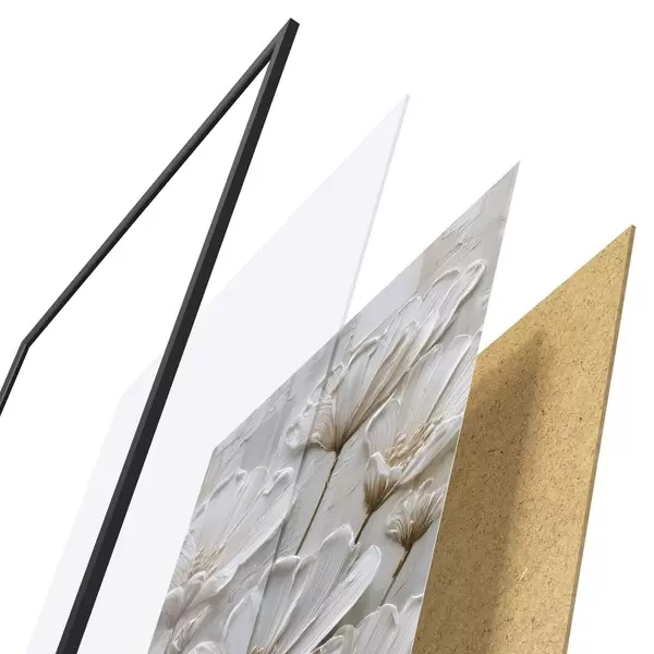 Das Poster besteht aus einem Rahmen, Plexiglas, einem gedruckten Bild und einer Rückwand aus Spanplatten. Dank der Halterungen auf der Rückseite kann das Poster sofort an die Wand gehängt werden.