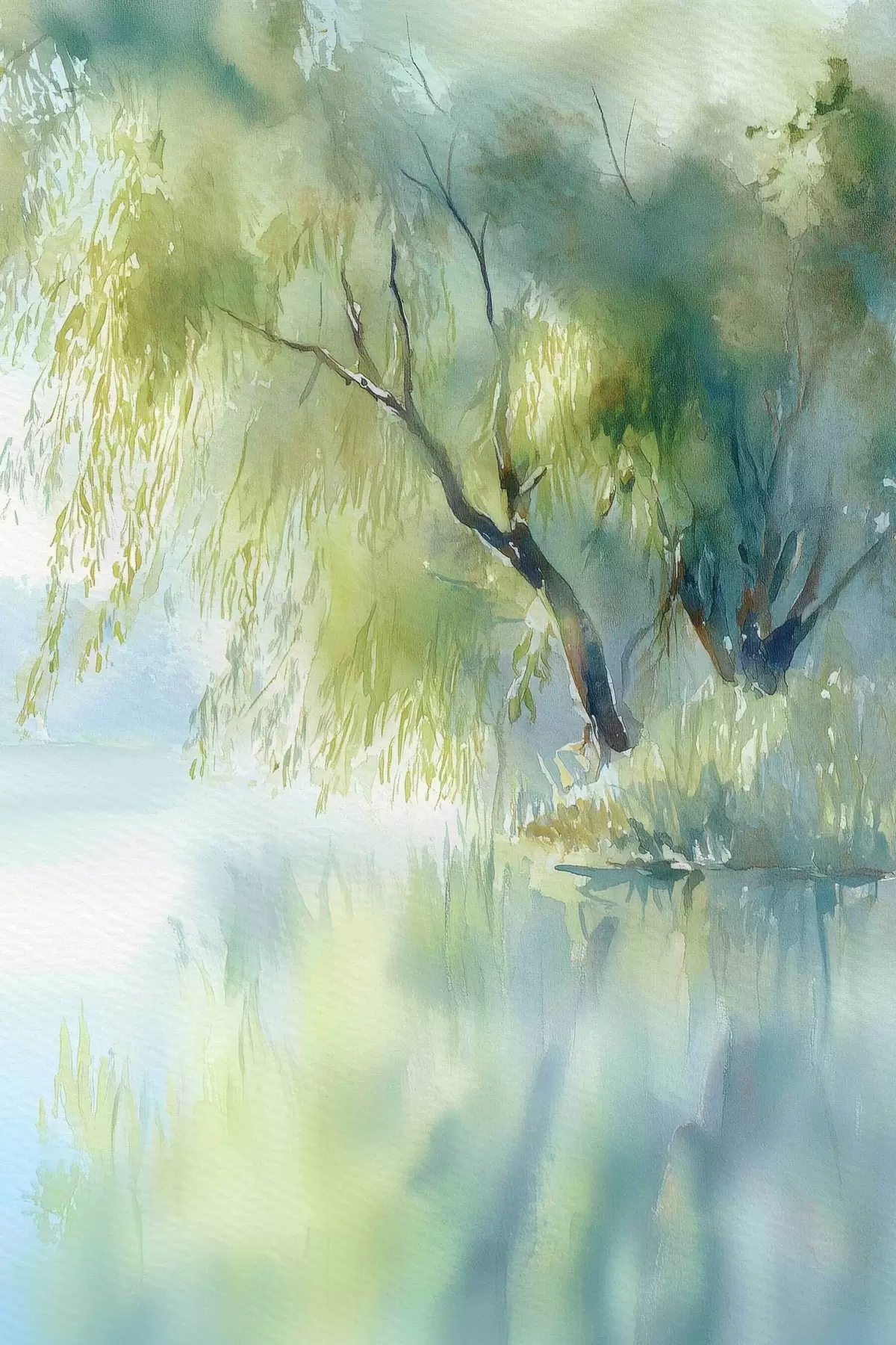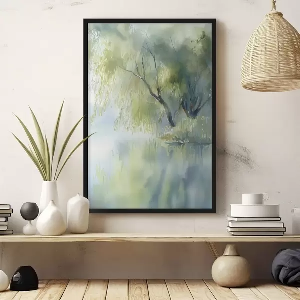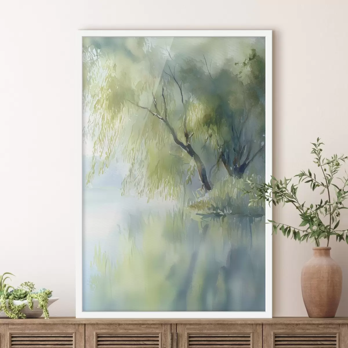 Poster weidenbaum am Seeufer im Aquarellstil Nr f45715
