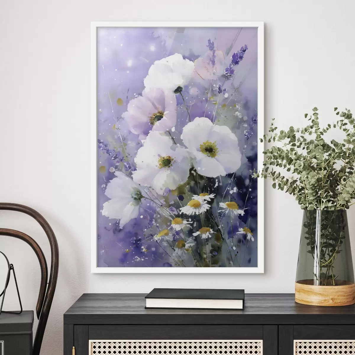 Poster aquarellstrauß in Lila- und Weißtönen Nr f45719