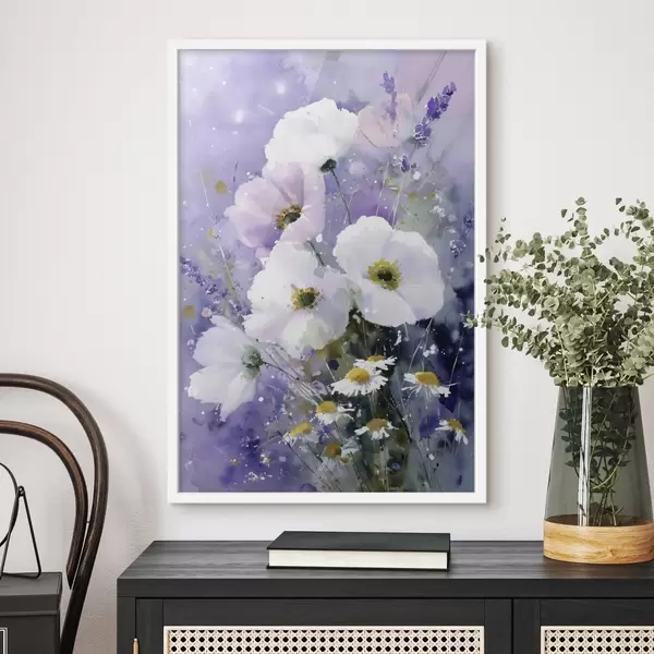 Poster aquarellstrauß in Lila- und Weißtönen f45719