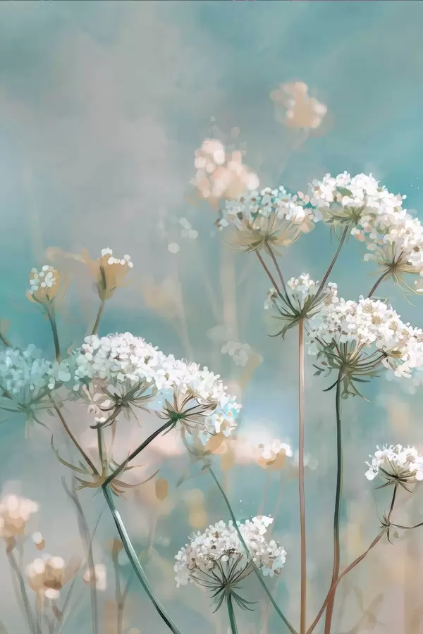 Poster Königin-Annes-Spitze-Blumen im Aquarellstil auf blauem Hintergrund f45721