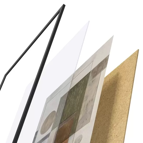 Das Poster besteht aus einem Rahmen, Plexiglas, einem gedruckten Bild und einer Rückwand aus Spanplatten. Dank der Halterungen auf der Rückseite kann das Poster sofort an die Wand gehängt werden.