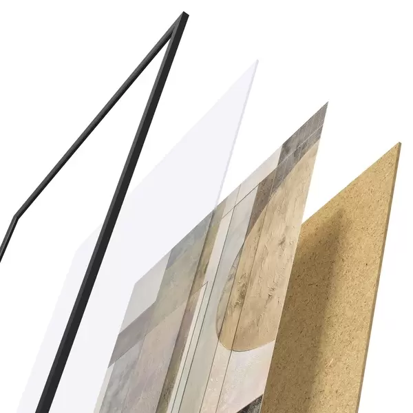 Das Poster besteht aus einem Rahmen, Plexiglas, einem gedruckten Bild und einer Rückwand aus Spanplatten. Dank der Halterungen auf der Rückseite kann das Poster sofort an die Wand gehängt werden.