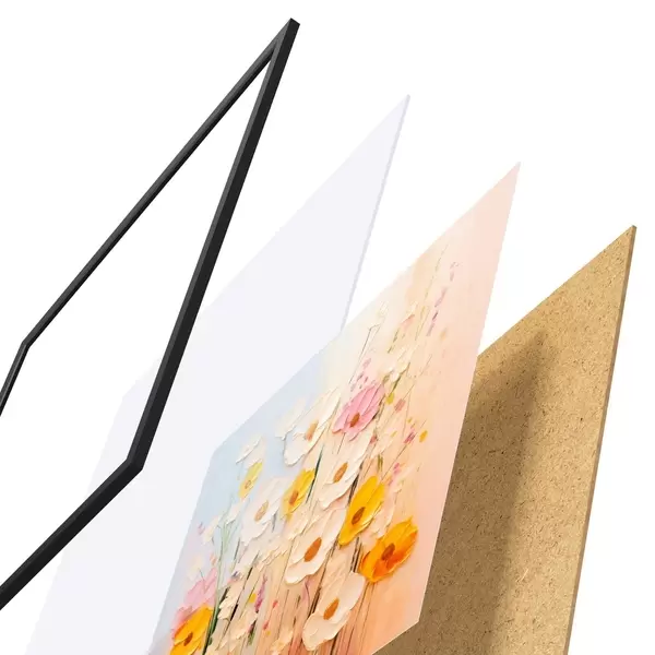 Das Poster besteht aus einem Rahmen, Plexiglas, einem gedruckten Bild und einer Rückwand aus Spanplatten. Dank der Halterungen auf der Rückseite kann das Poster sofort an die Wand gehängt werden.