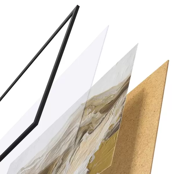 Das Poster besteht aus einem Rahmen, Plexiglas, einem gedruckten Bild und einer Rückwand aus Spanplatten. Dank der Halterungen auf der Rückseite kann das Poster sofort an die Wand gehängt werden.