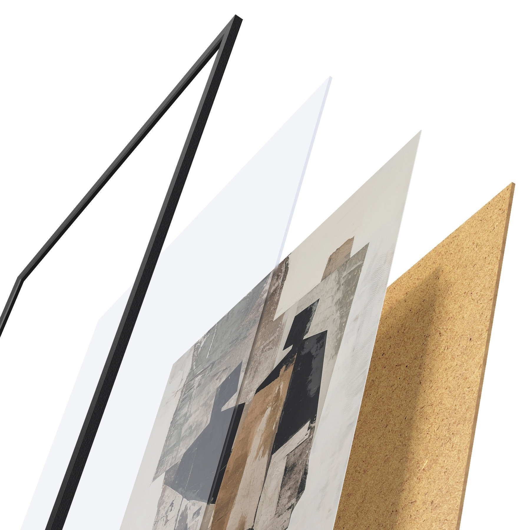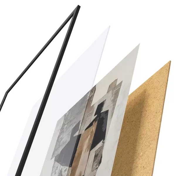 Das Poster besteht aus einem Rahmen, Plexiglas, einem gedruckten Bild und einer Rückwand aus Spanplatten. Dank der Halterungen auf der Rückseite kann das Poster sofort an die Wand gehängt werden.