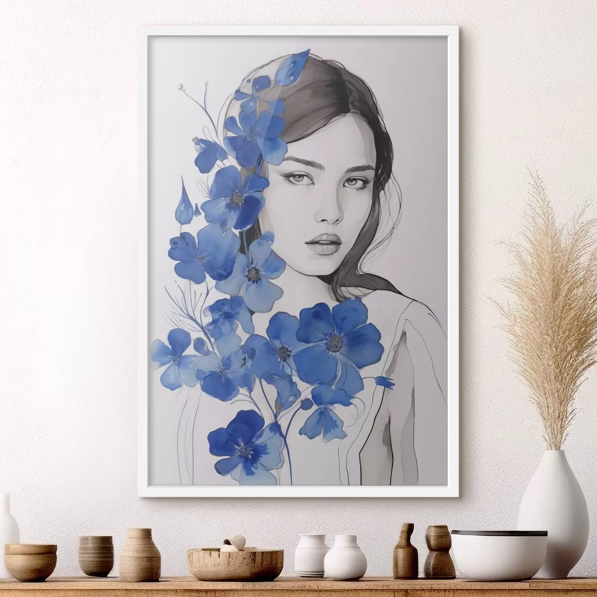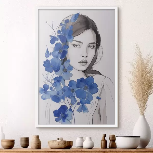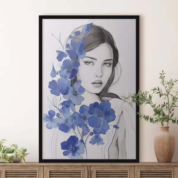 Poster Mädchen und blaue Blumen Nr f45757