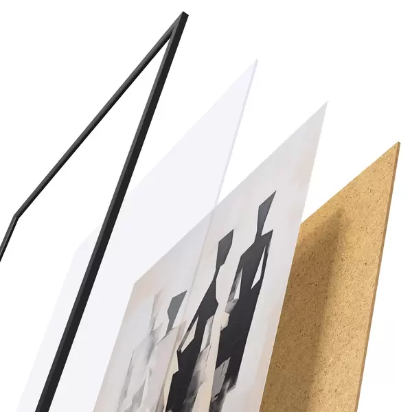 Das Poster besteht aus einem Rahmen, Plexiglas, einem gedruckten Bild und einer Rückwand aus Spanplatten. Dank der Halterungen auf der Rückseite kann das Poster sofort an die Wand gehängt werden.