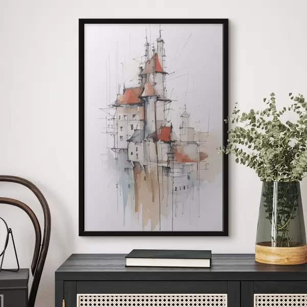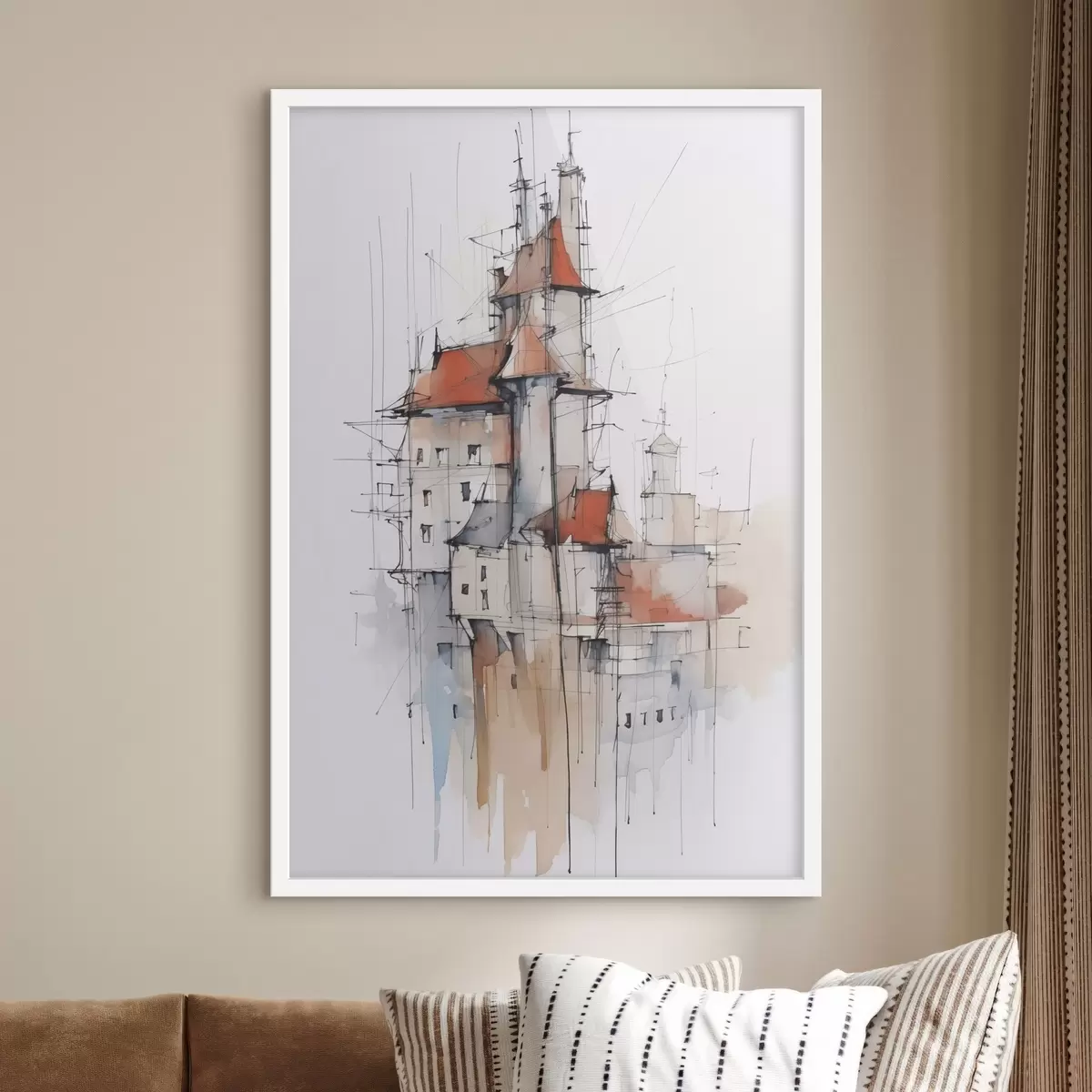 Poster Häuser-Imitation, Skizze und Aquarell f45764