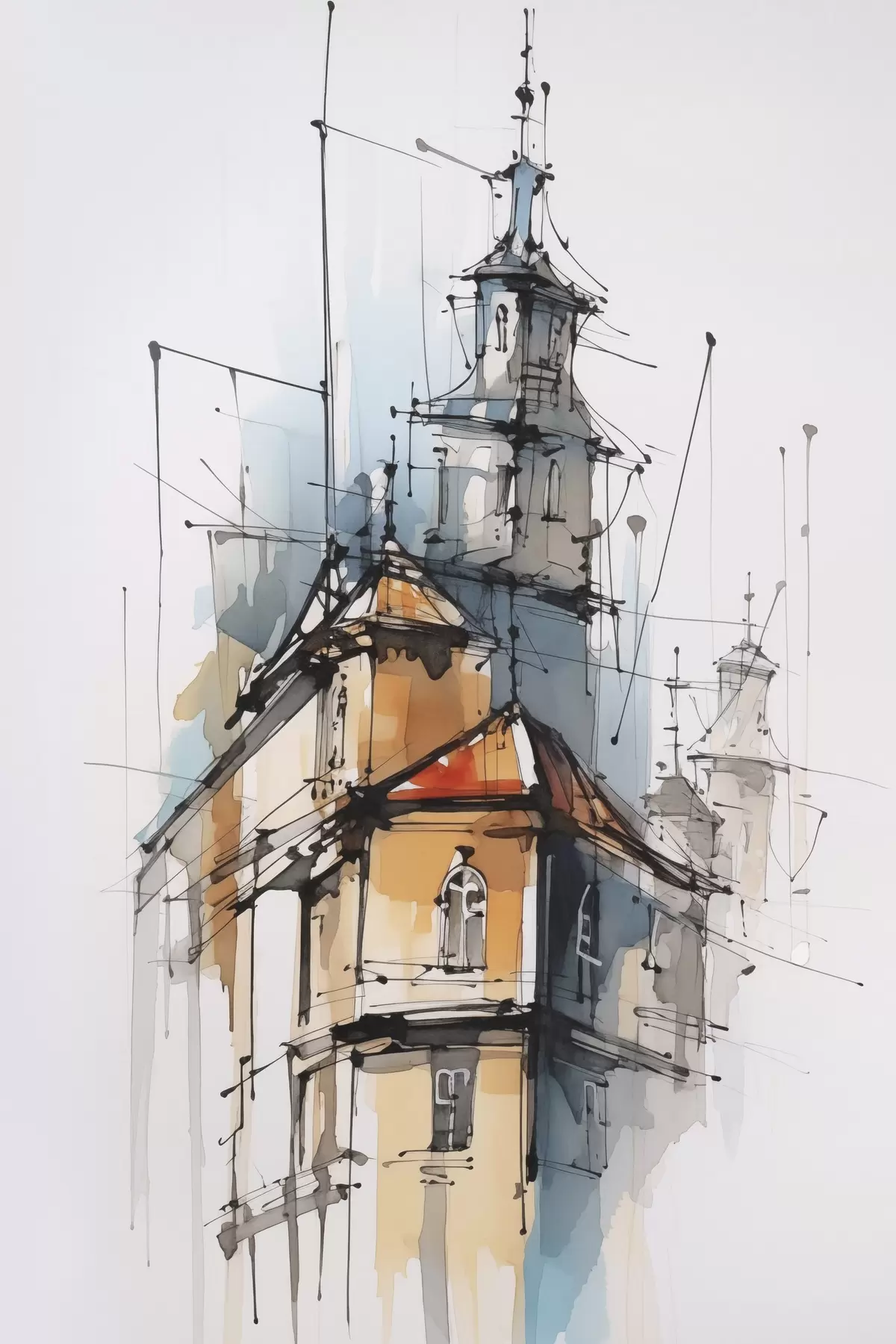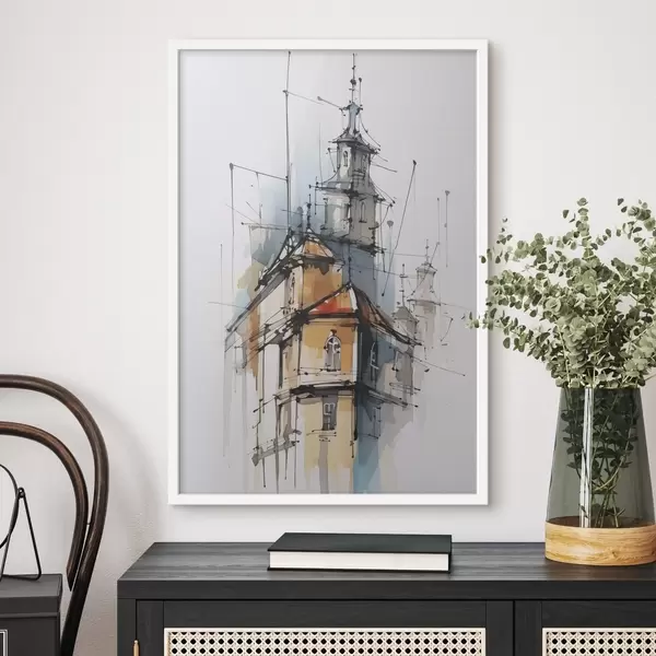 Poster Häuser-Imitation, Skizze und Aquarell f45765