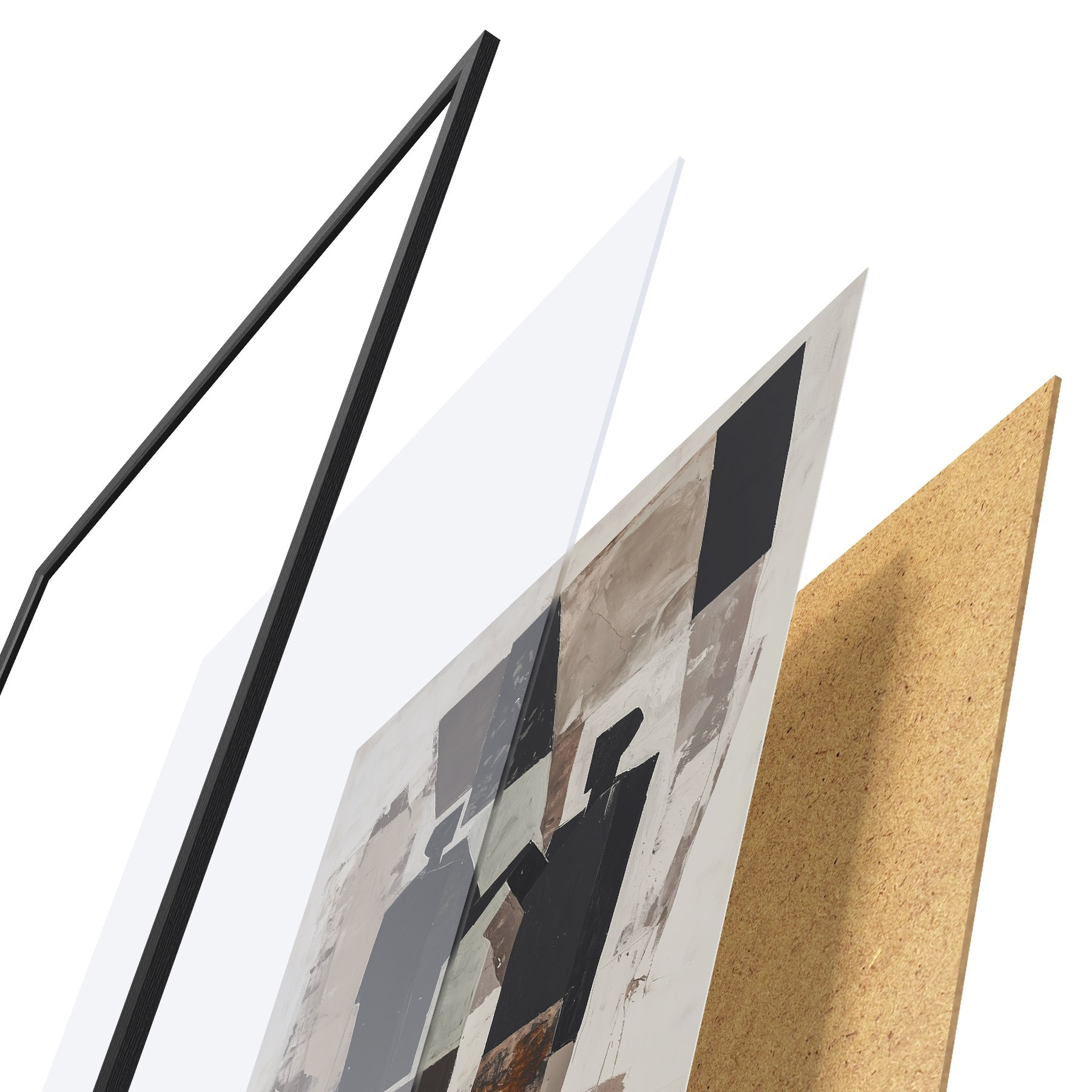 Das Poster besteht aus einem Rahmen, Plexiglas, einem gedruckten Bild und einer Rückwand aus Spanplatten. Dank der Halterungen auf der Rückseite kann das Poster sofort an die Wand gehängt werden.