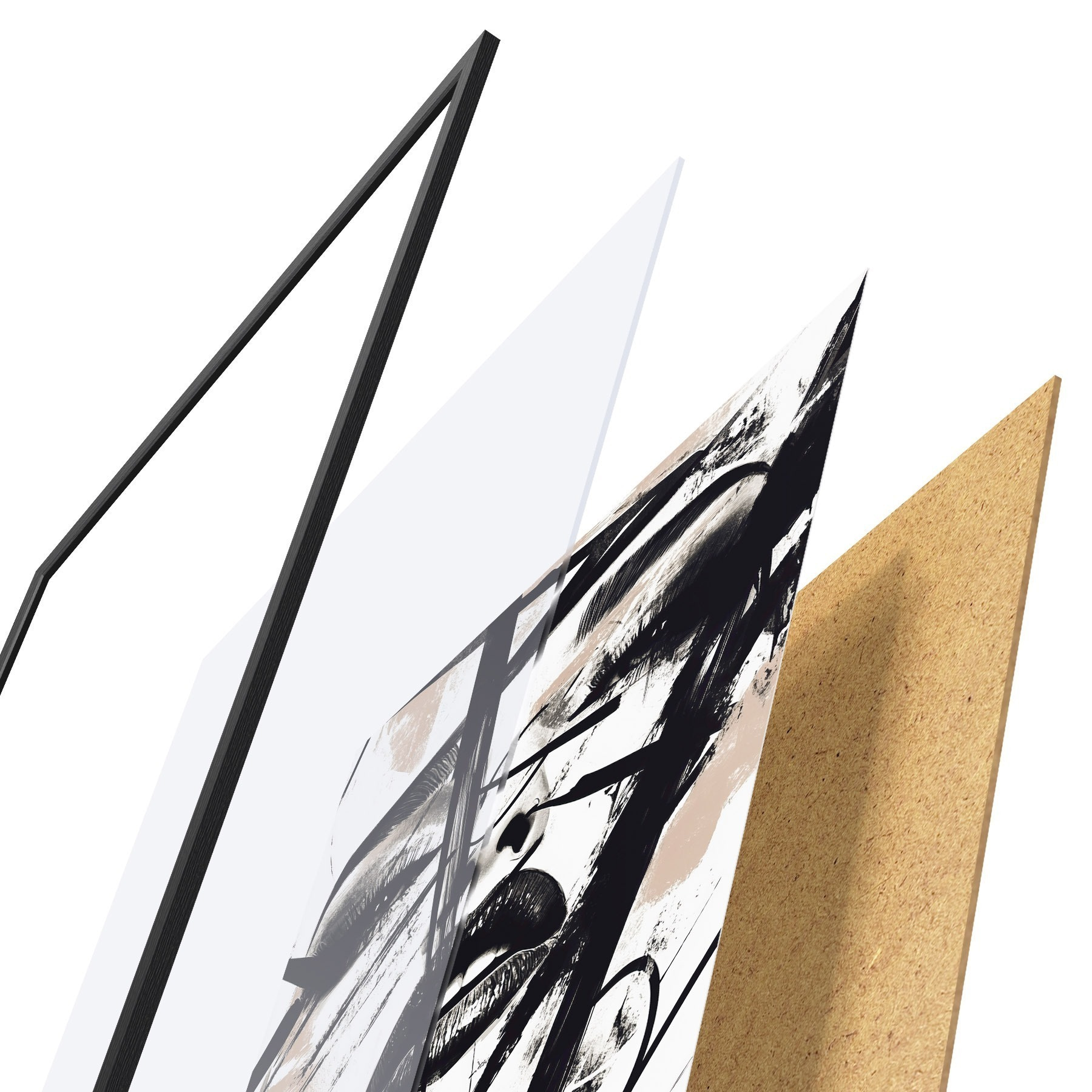 Das Poster besteht aus einem Rahmen, Plexiglas, einem gedruckten Bild und einer Rückwand aus Spanplatten. Dank der Halterungen auf der Rückseite kann das Poster sofort an die Wand gehängt werden.