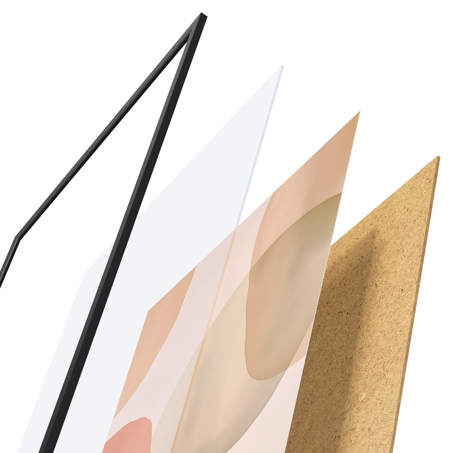 Das Poster besteht aus einem Rahmen, Plexiglas, einem gedruckten Bild und einer Rückwand aus Spanplatten. Dank der Halterungen auf der Rückseite kann das Poster sofort an die Wand gehängt werden.