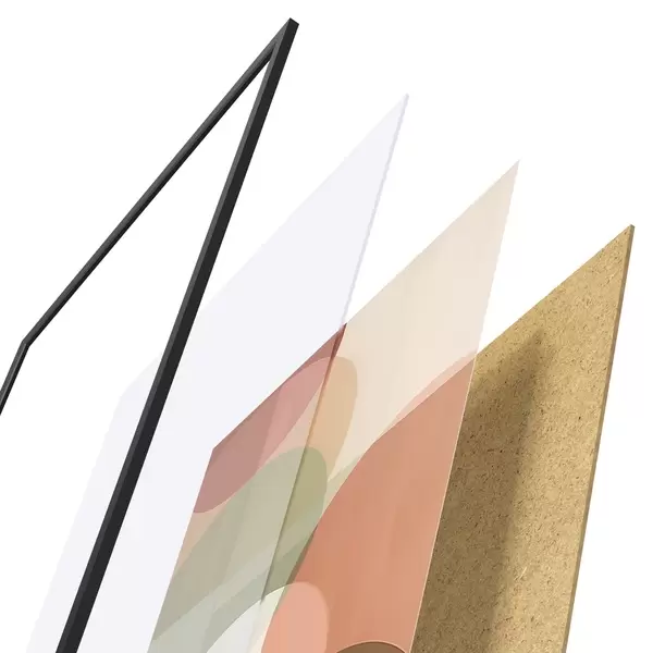 Das Poster besteht aus einem Rahmen, Plexiglas, einem gedruckten Bild und einer Rückwand aus Spanplatten. Dank der Halterungen auf der Rückseite kann das Poster sofort an die Wand gehängt werden.