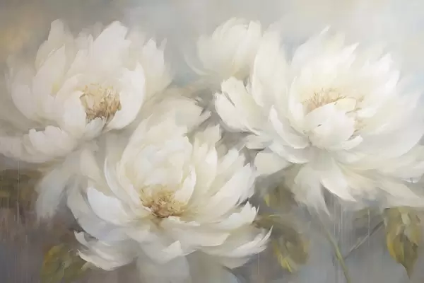 Poster Drei üppige weiße Pfingstrosen auf zartem Hintergrund Nr f45808