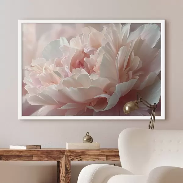 Poster Blühende Pfingstrose in Rosa- und Beigetönen f45825