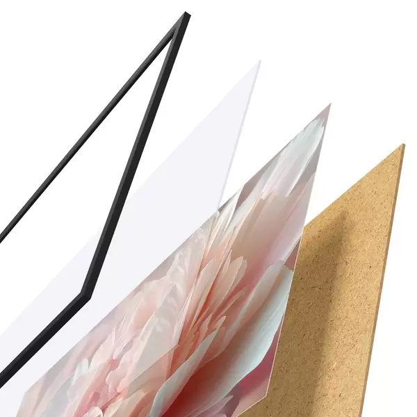 Das Poster besteht aus einem Rahmen, Plexiglas, einem gedruckten Bild und einer Rückwand aus Spanplatten. Dank der Halterungen auf der Rückseite kann das Poster sofort an die Wand gehängt werden.