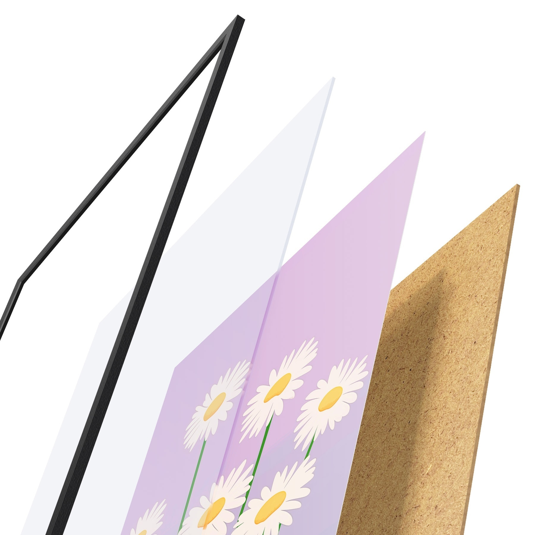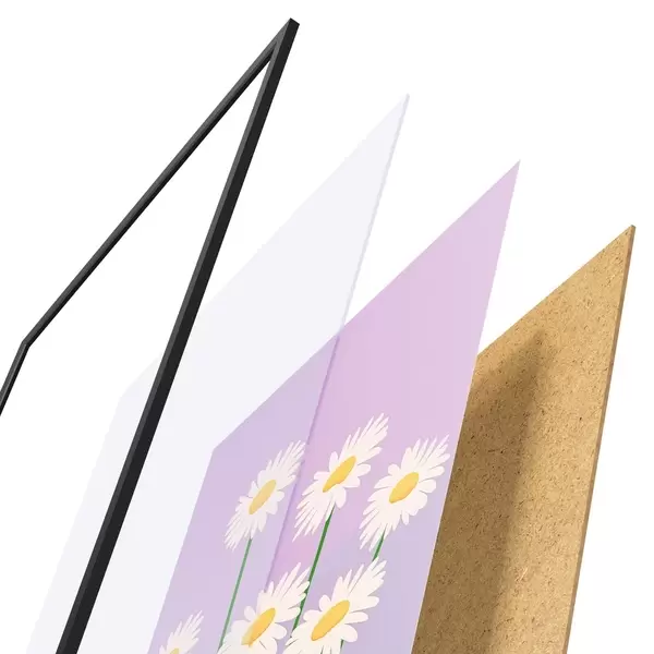 Das Poster besteht aus einem Rahmen, Plexiglas, einem gedruckten Bild und einer Rückwand aus Spanplatten. Dank der Halterungen auf der Rückseite kann das Poster sofort an die Wand gehängt werden.