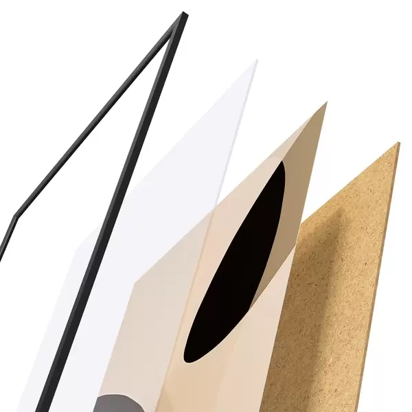 Das Poster besteht aus einem Rahmen, Plexiglas, einem gedruckten Bild und einer Rückwand aus Spanplatten. Dank der Halterungen auf der Rückseite kann das Poster sofort an die Wand gehängt werden.