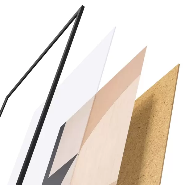 Das Poster besteht aus einem Rahmen, Plexiglas, einem gedruckten Bild und einer Rückwand aus Spanplatten. Dank der Halterungen auf der Rückseite kann das Poster sofort an die Wand gehängt werden.