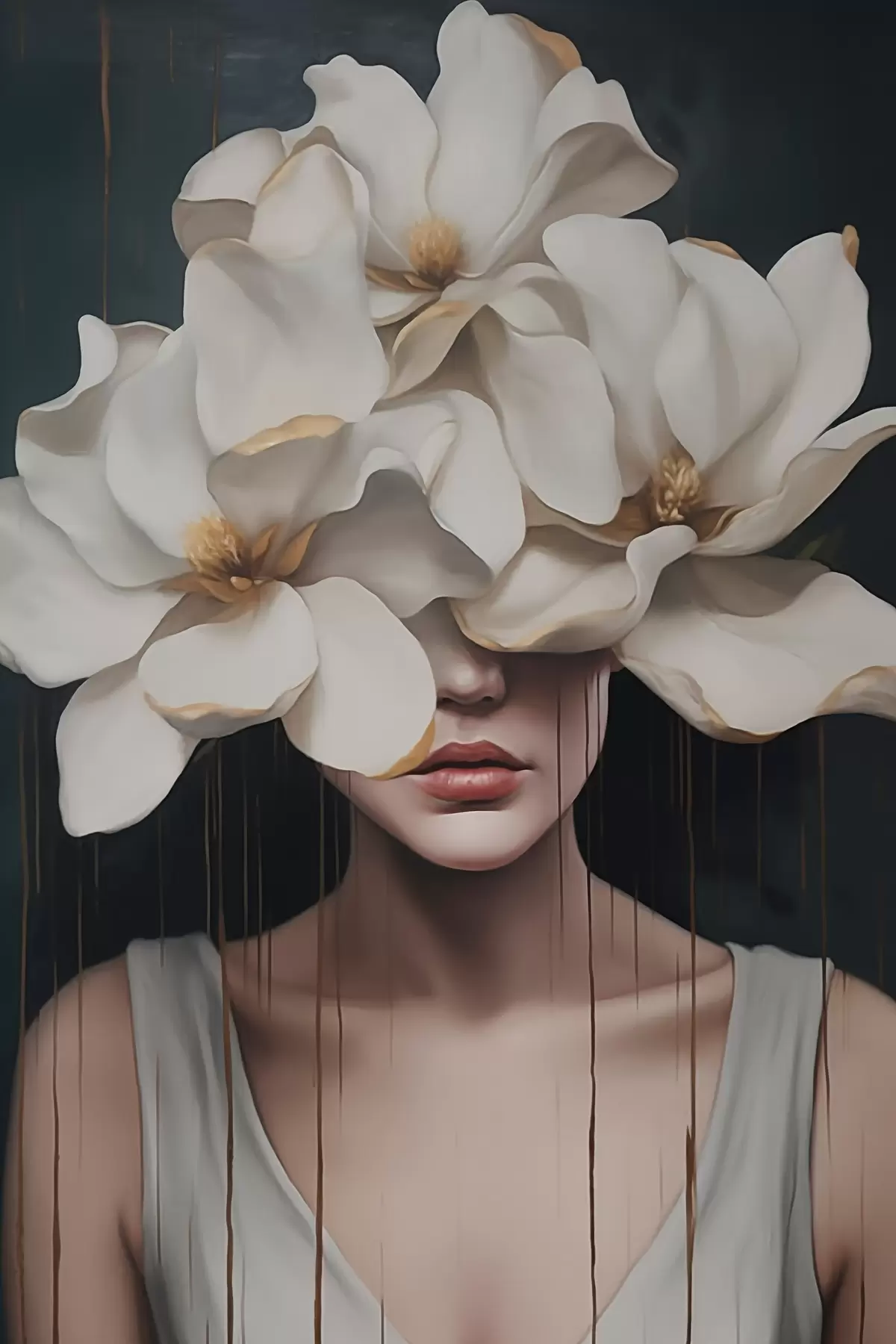 Poster Frau mit weißen Blumen auf dem Kopf Nr f45843