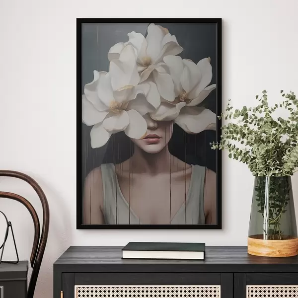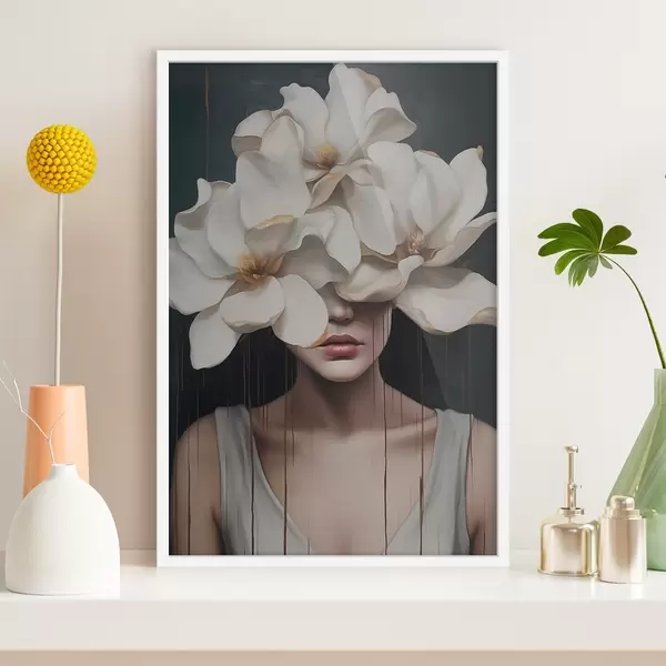 Poster Frau mit weißen Blumen auf dem Kopf f45843