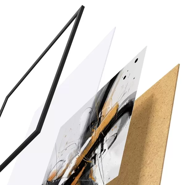 Das Poster besteht aus einem Rahmen, Plexiglas, einem gedruckten Bild und einer Rückwand aus Spanplatten. Dank der Halterungen auf der Rückseite kann das Poster sofort an die Wand gehängt werden.
