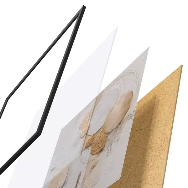 Das Poster besteht aus einem Rahmen, Plexiglas, einem gedruckten Bild und einer Rückwand aus Spanplatten. Dank der Halterungen auf der Rückseite kann das Poster sofort an die Wand gehängt werden.