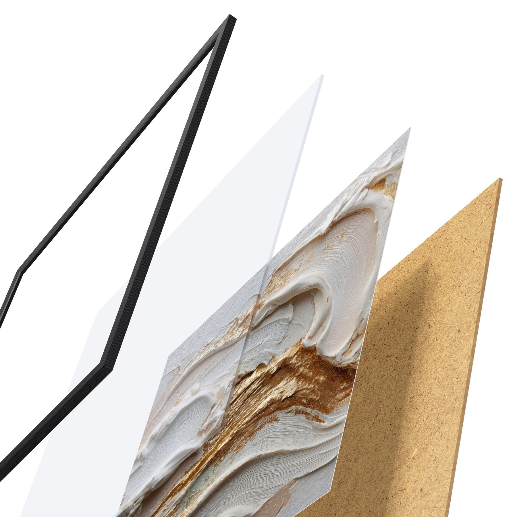 Das Poster besteht aus einem Rahmen, Plexiglas, einem gedruckten Bild und einer Rückwand aus Spanplatten. Dank der Halterungen auf der Rückseite kann das Poster sofort an die Wand gehängt werden.