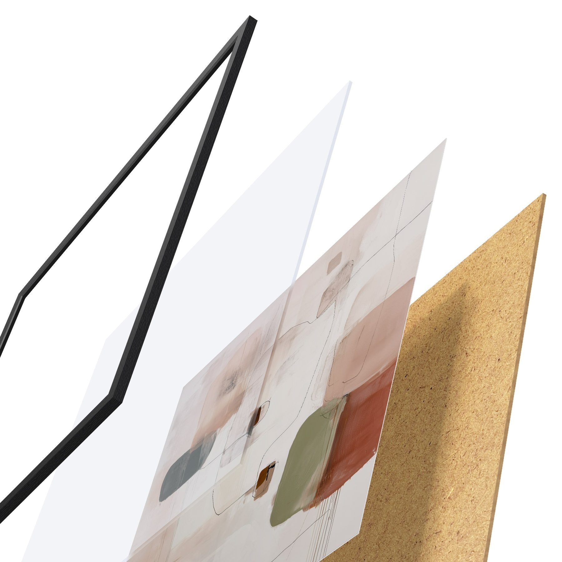 Das Poster besteht aus einem Rahmen, Plexiglas, einem gedruckten Bild und einer Rückwand aus Spanplatten. Dank der Halterungen auf der Rückseite kann das Poster sofort an die Wand gehängt werden.
