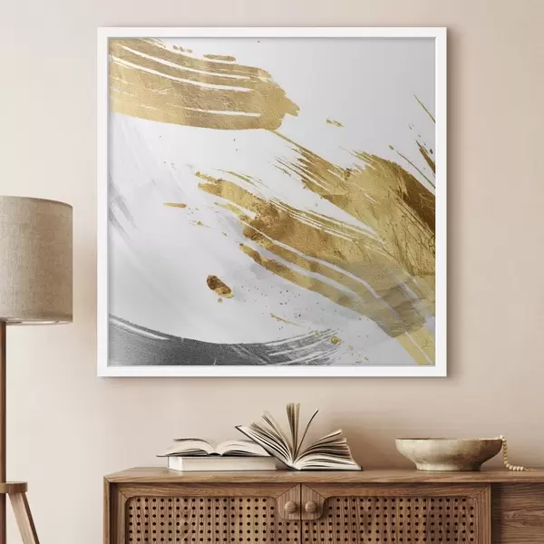 Poster Dynamische Striche in Weiß- und Gelbgrau-Tönen f45866