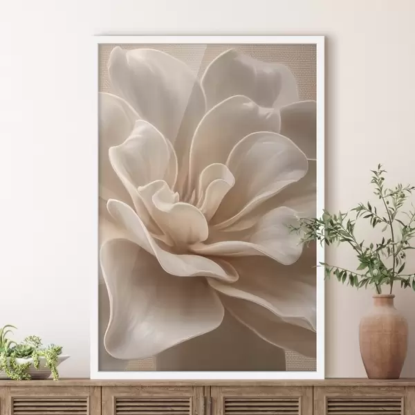 Poster Große cremefarbene Blume, weiche Blütenblätter, Makroaufnahme f45874